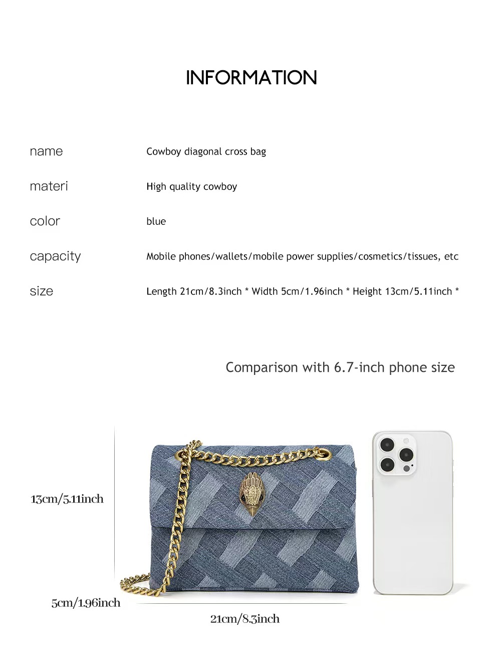 Be the first to review “Eagle head women’s bag, denim chain, single shoulder crossbody bag, small bag-KURT GEIGER” Cancel reply