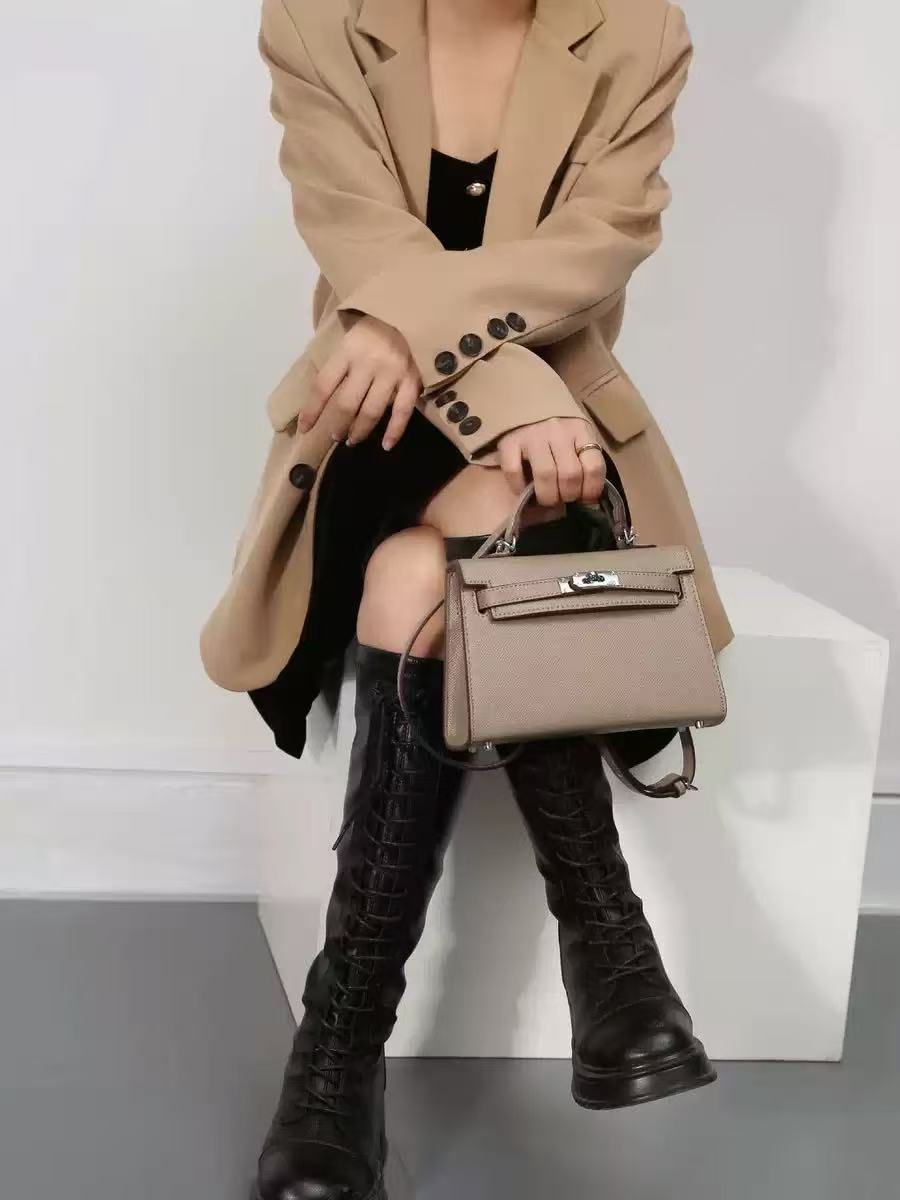 2025 New Swift First Generation Long Kelly Bag, Genuine Leather Handheld Mini Cowhide Shoulder and Crossbody Bag for Women